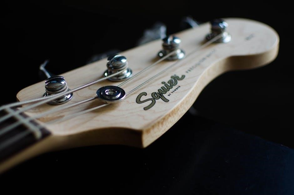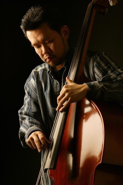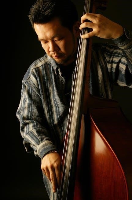 Controls like volume and tone knobs are explained, demonstrating how they shape the bass’s sound․ Finally, we cover the output jack, where the instrument connects to an amplifier․ Understanding these parts allows students to better care for their instrument and communicate effectively with instructors and technicians․